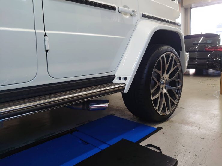 今回はゲレンデの純正マフラーからブラバスのマフラーに交換をしました