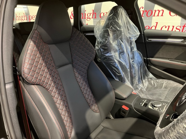 運転席周りはご覧の通り。本革巻スポーツステアリング・カーボン調インテリアトリム・