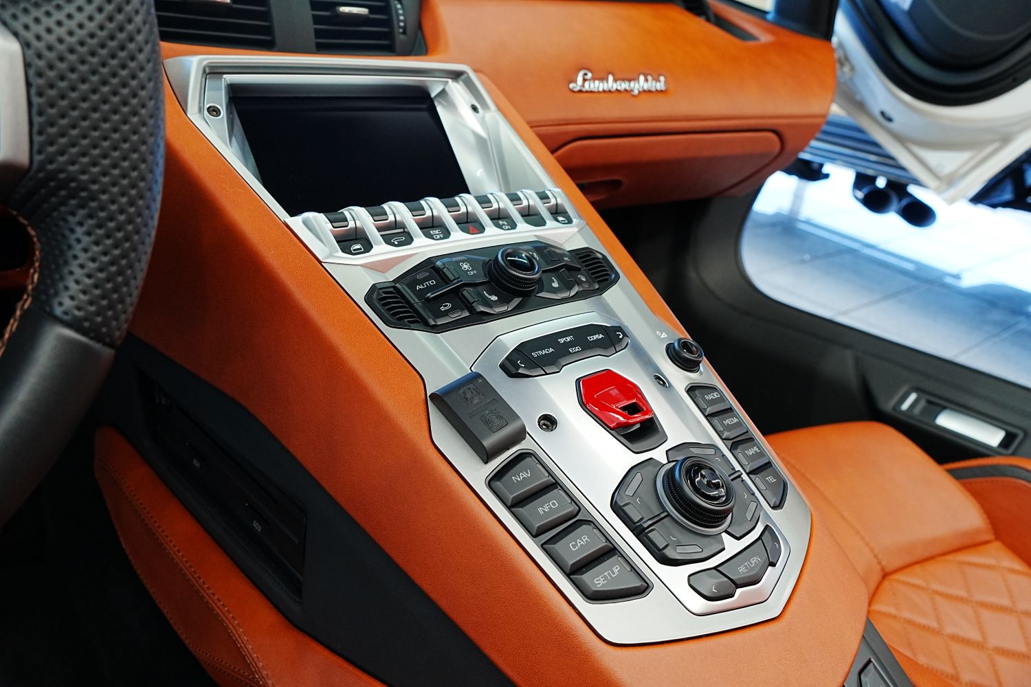 センターコンソールのボタンデザインはさすがスーパーカーだなといったところ。