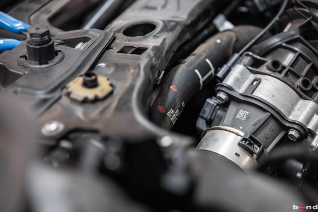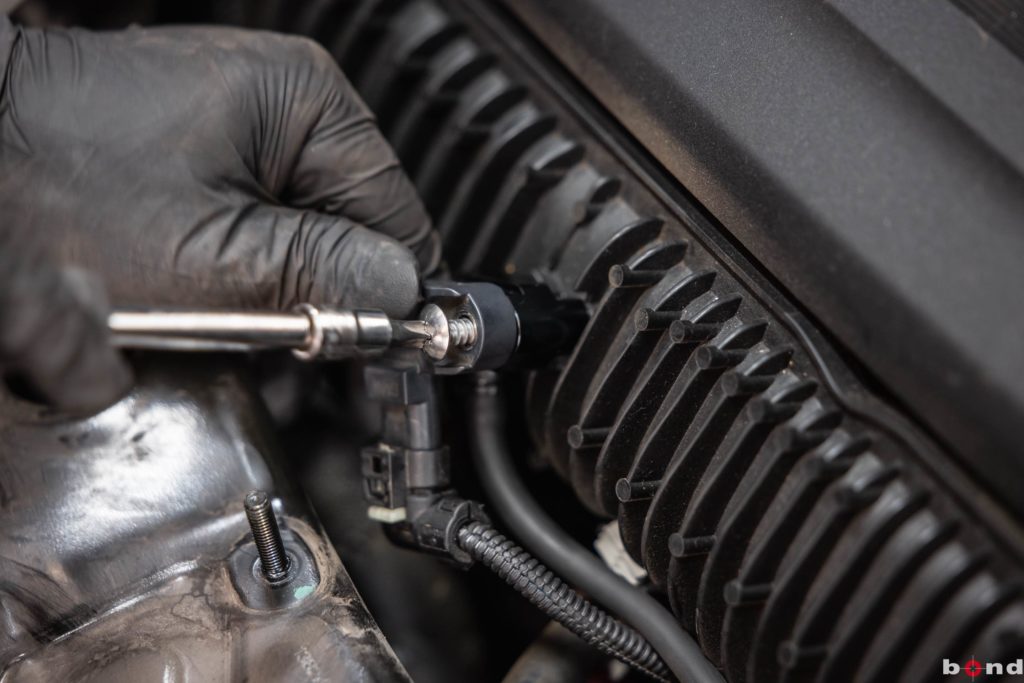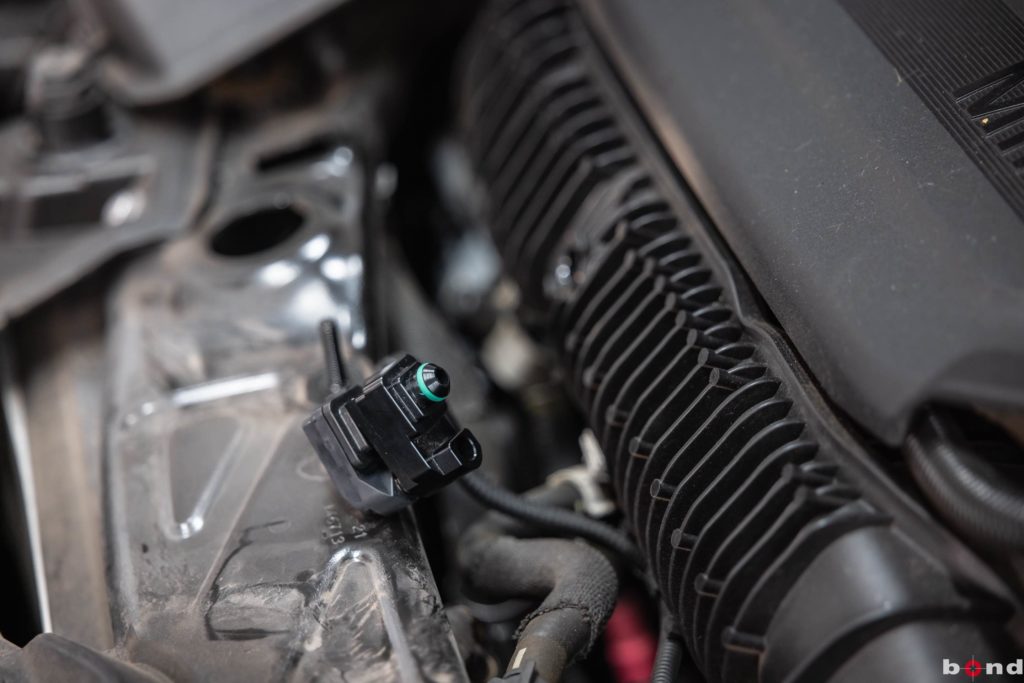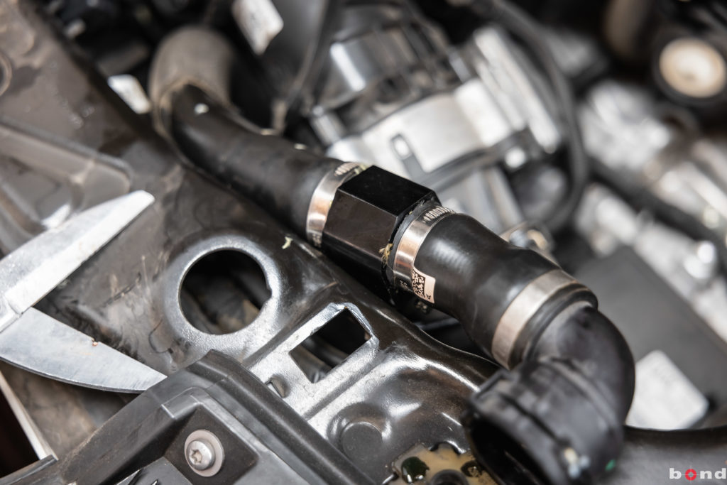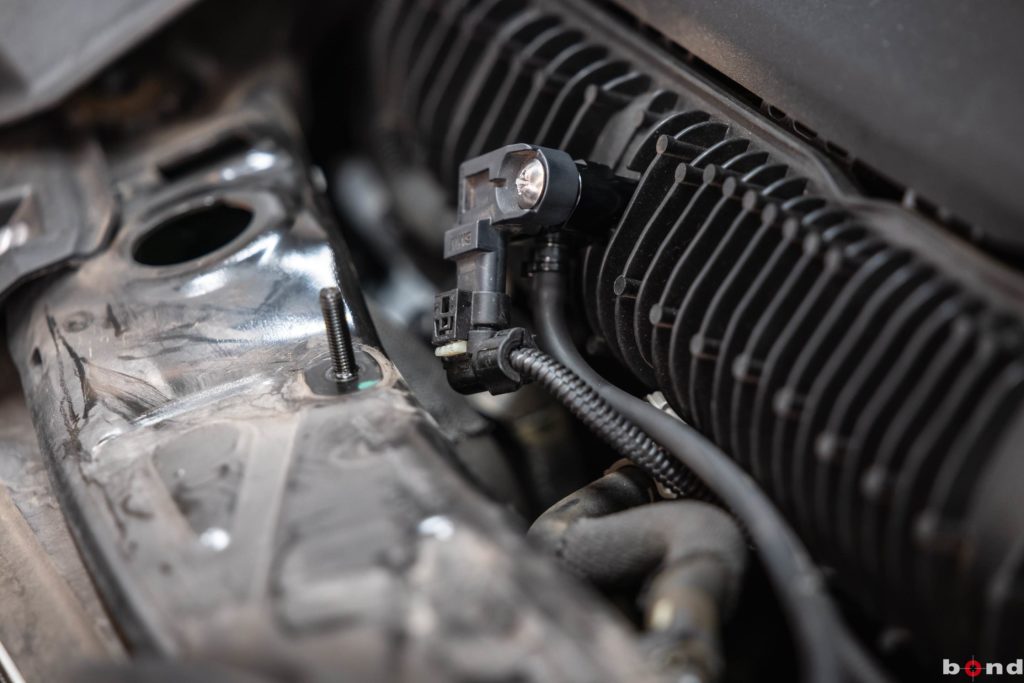 まずエンジンルームでターボ計と水温計それぞれのアタッチメントを取り付け完了。