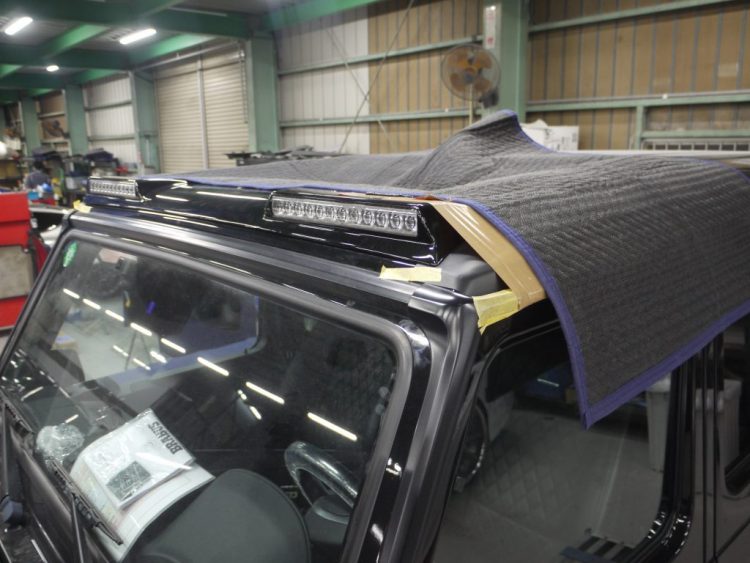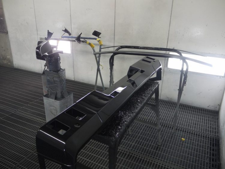 塗装ブースではゲレンデヴァーゲンのパーツたちが塗装されています。