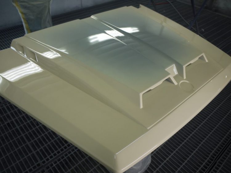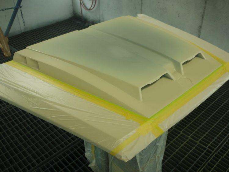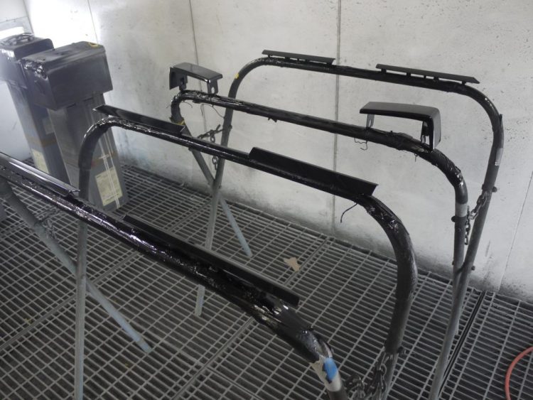 塗装ブースではゲレンデヴァーゲンのパーツたちが塗装されています。