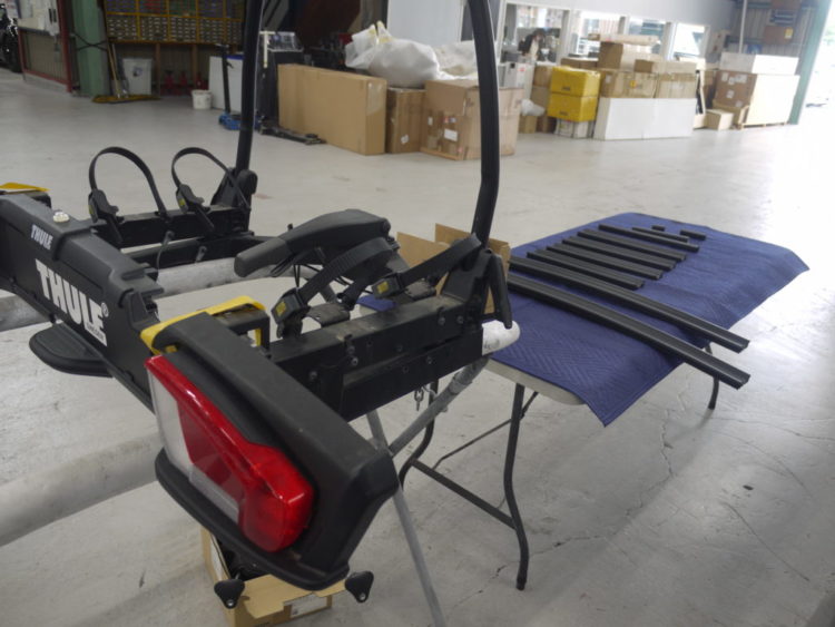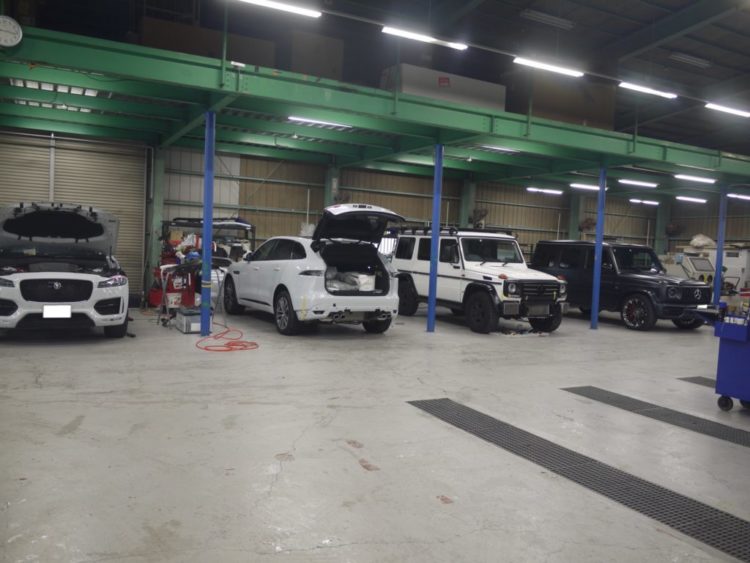 今日の工場は⁇ こんばんは! さて今日の工場は朝からこんな感じで 相変わらずのゲレンデだらけの鈑金棟です。 そんな中ゲートの開いているF-Paseはリアバンパーのシボ取りペイントとハーマンリアディフューザーの取付 早速もう組付けで只今こうなっております 完成をお楽しみに そしてそしてこんなことも スーリーサイクルキャリアのアルミ地の部分をシボ黒マットにペイントしました それではこの辺で 明日もよろしくお願いします