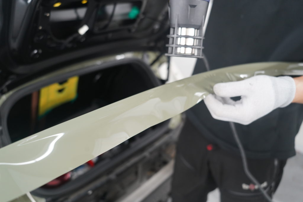 隙間がないようにフィルムを重ねて丁寧に施工しています