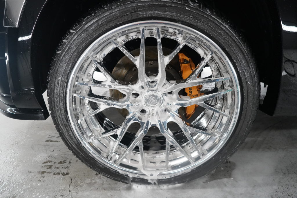 ホイールから始めていき細かい箇所やボディまで洗浄していきます。