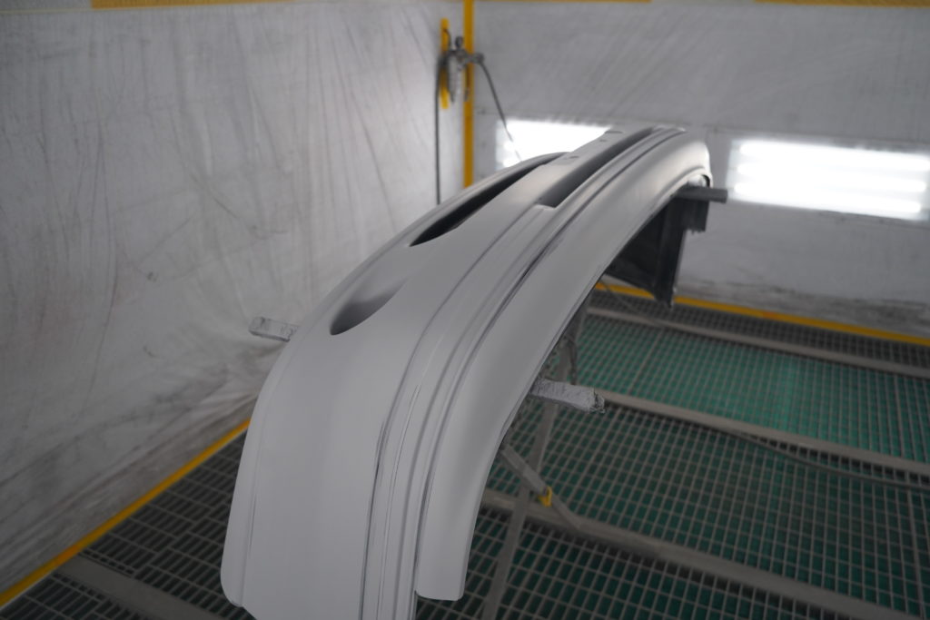 まずは、車体に乗せ合わせをしてサフェーサーを塗布してからの〜