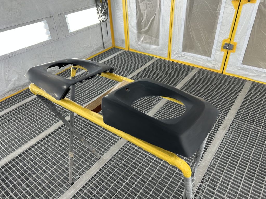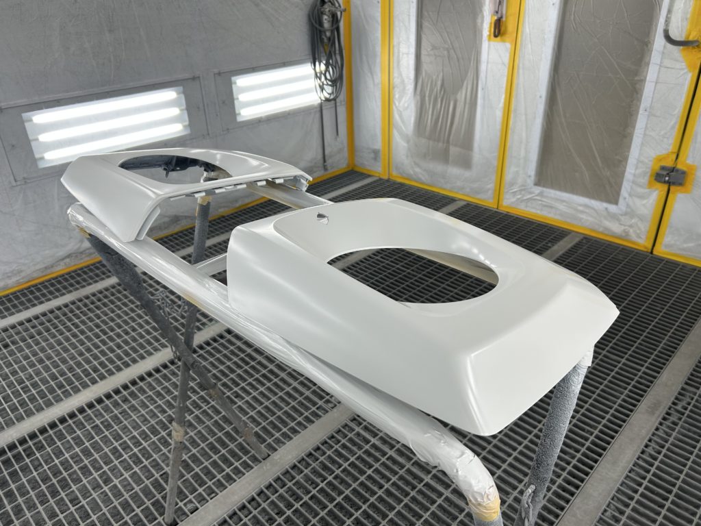 フェンダーが既存のパネルでドアとクォーターが板金しているのですが、既存のパネルは傷などで白くボヤけてますね![]()