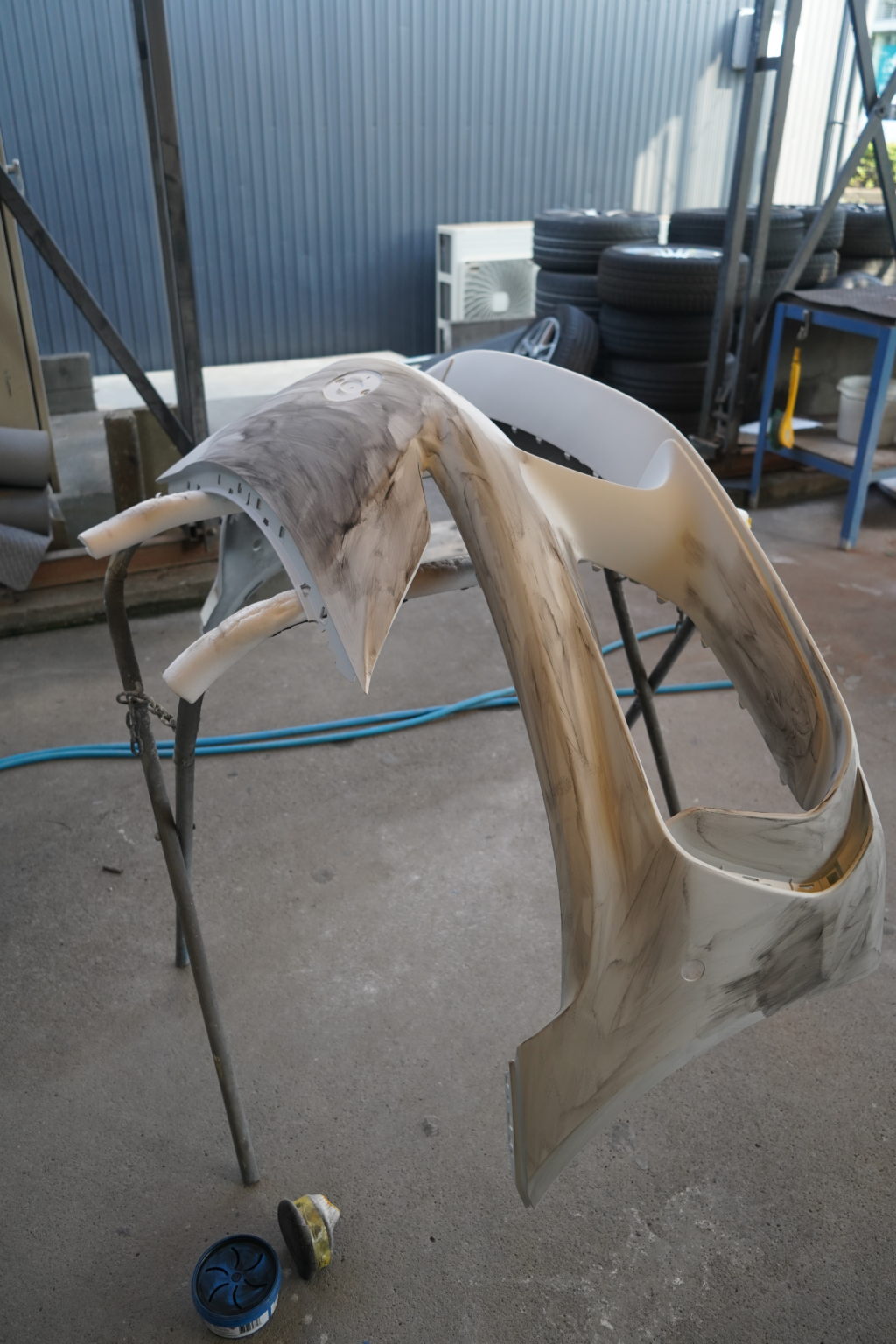 バンパーを研いでいくのですが白だと研げているのかいないのか全然分からないんですよね…