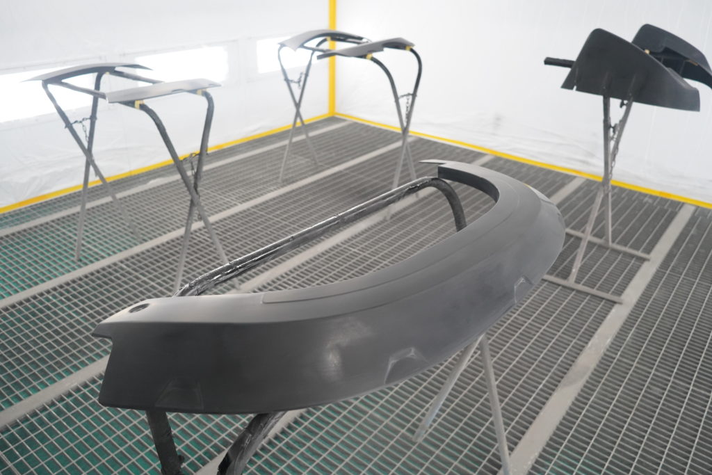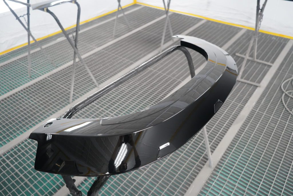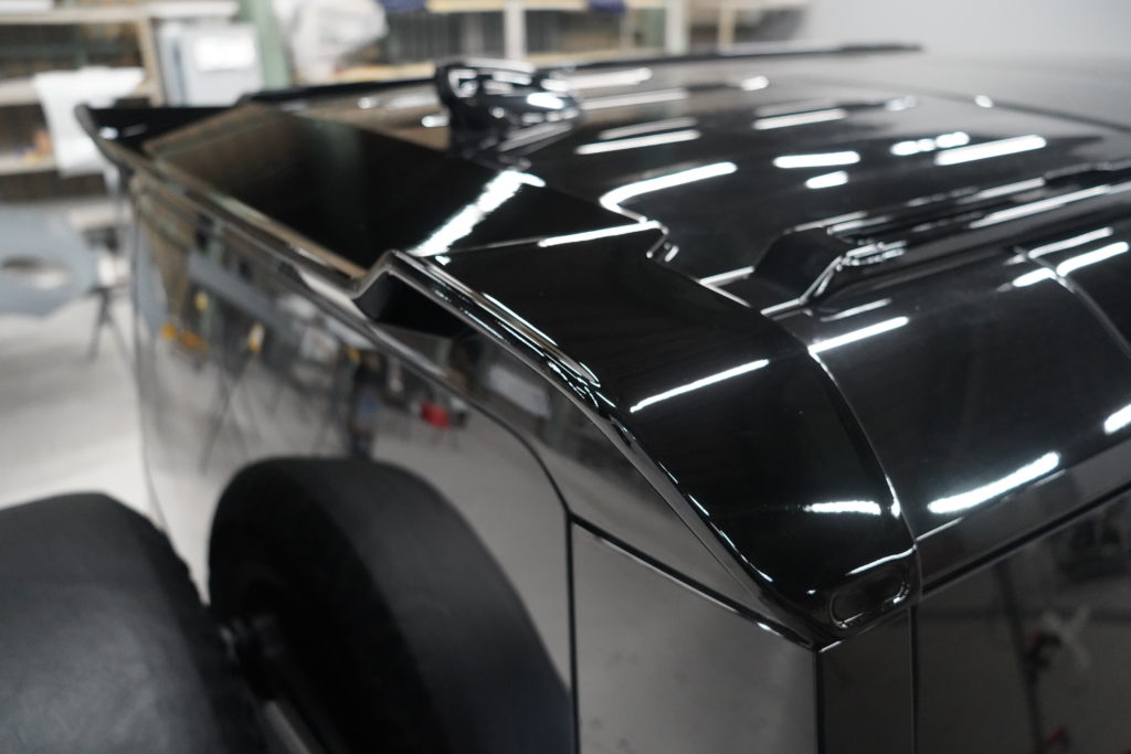 バンパーコーナーやドア下パネル、アーチモールなど樹脂部分は全てグロスブラックペイント