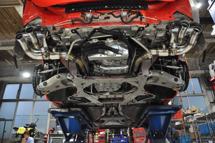 バンパーを外し見えたのは馬鹿でかいサイレンサー・・