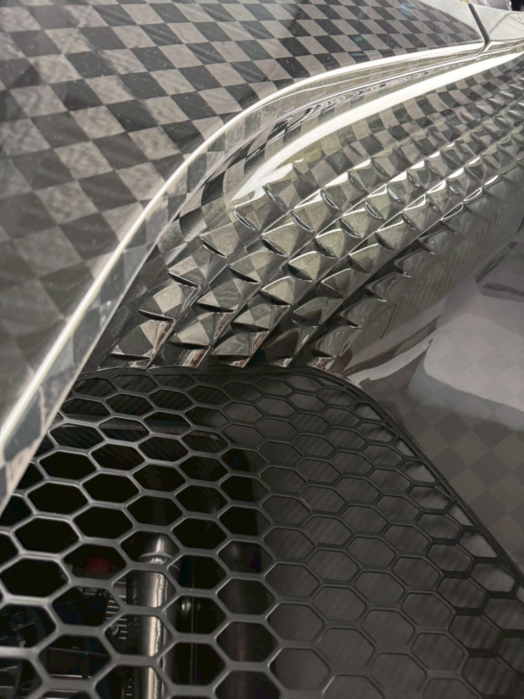 あまり目にしない大き目なチェック柄カーボンはエンボス加工で凹凸までついております。ほんとに変態。
