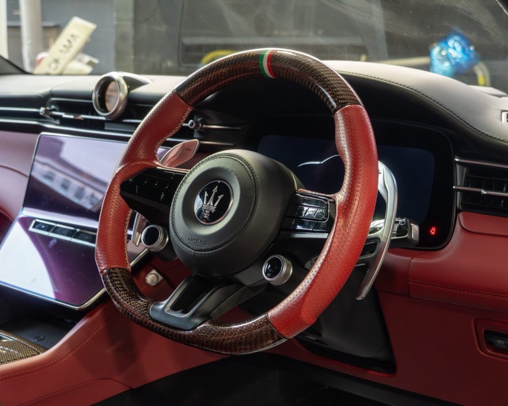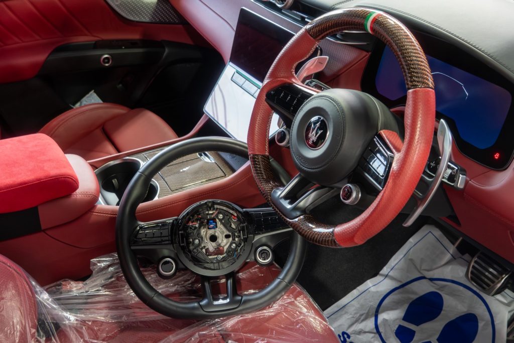 まずご確認頂きたいのはステアリングヒーター。カーボンにする場合熱は伝わりませんし、レザーにしても太くしたりする場合は内のアンコ具合で今までとは熱の伝わりかたの違いを感じる事になります。
