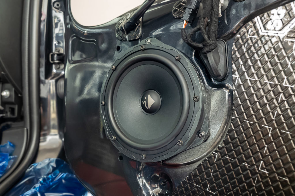 作業完了です。スピーカーのみの交換で、純正のアンプ内蔵ヘッドユニットで鳴らしています。