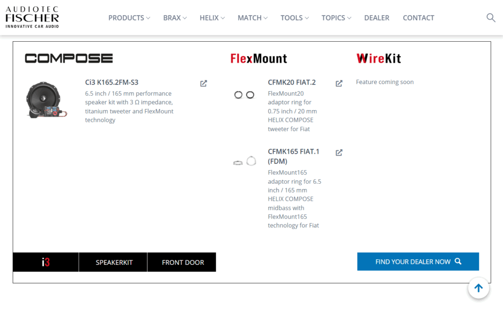 HELIXはスピーカーバッフルやツィーターリングなどの取り付けアタッチメントとして、FlexMountという専用のアダプターキットを数多く商品化しているのも特徴的です。