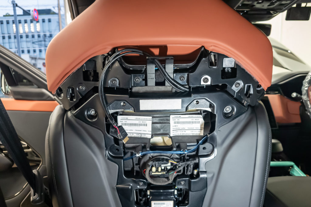 シート背面のカバーはカーボンなのですが、カバー本体には手を付けずに内部のフレームへの固定と周辺のスペース作りで取り付け出来るように仕上げました。