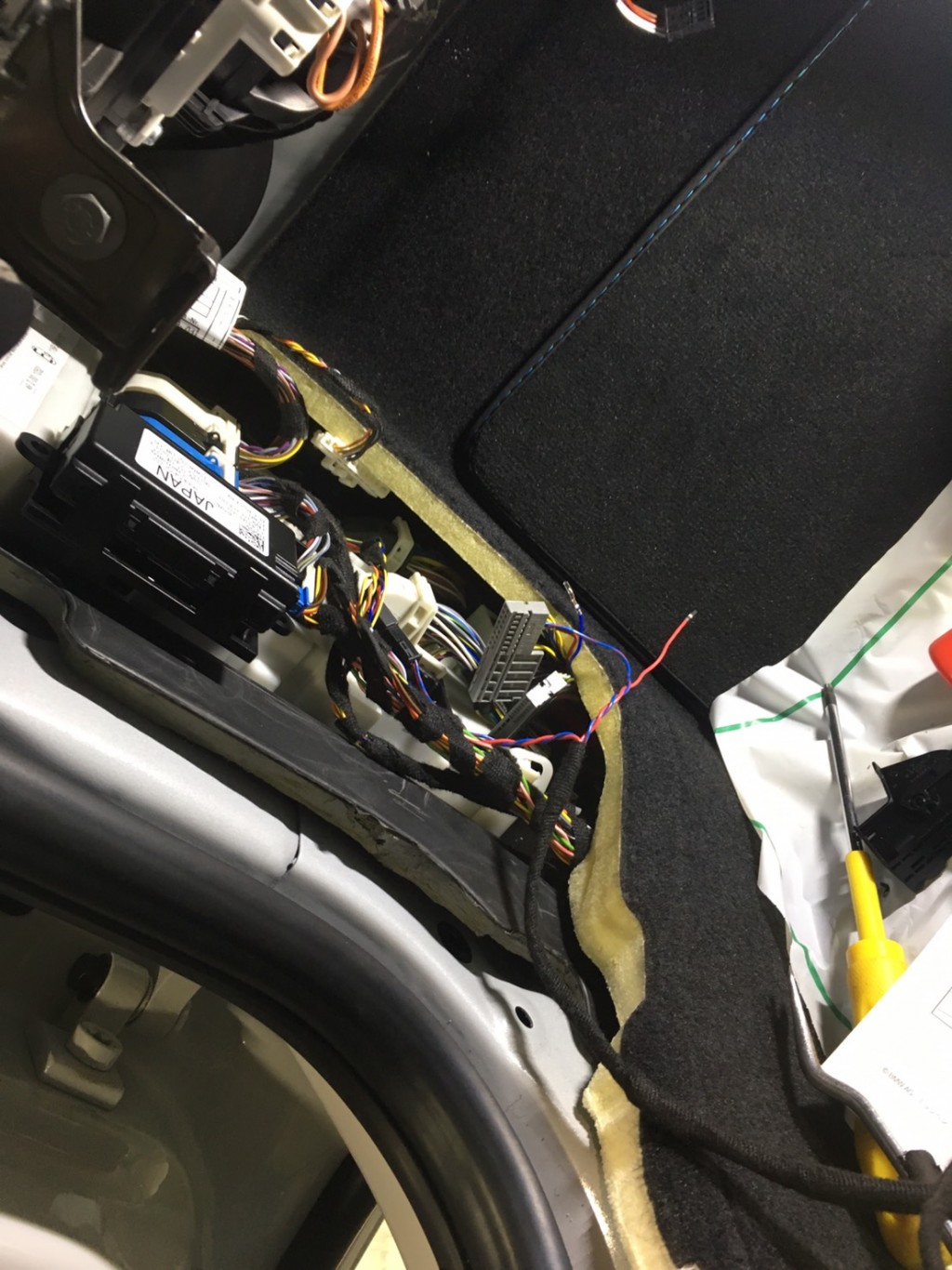 この配線が結構面倒でして・・・助手席足元からあれこれ取ります