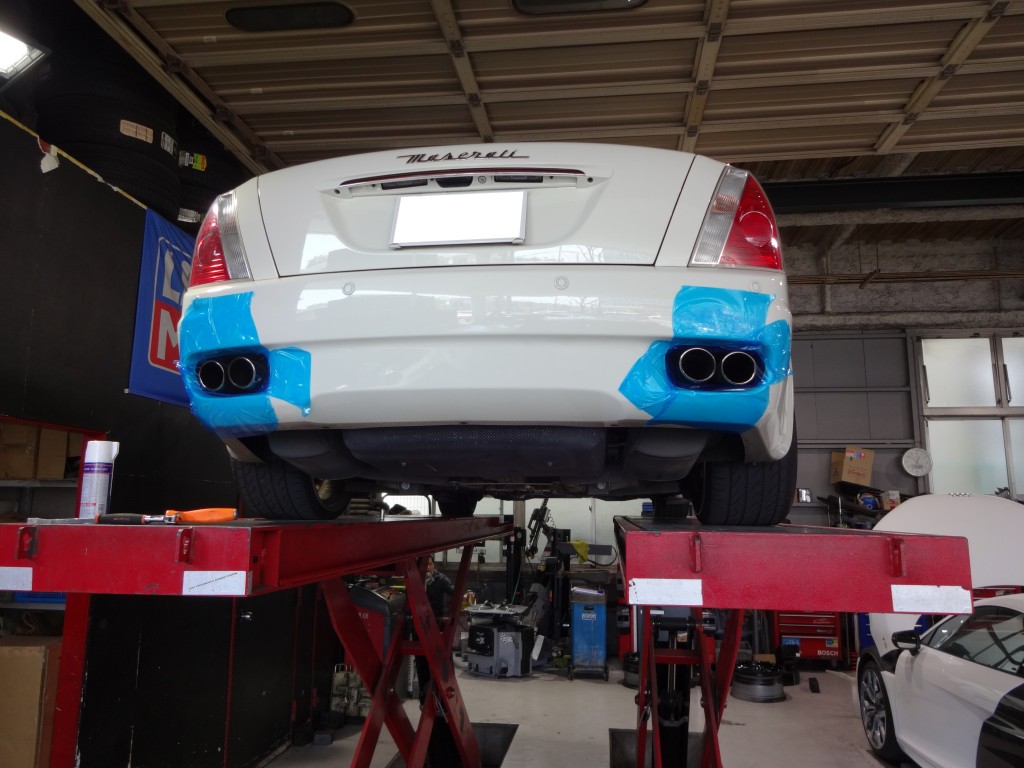 こちらのクアトロポルテにパワークラフトマフラーのお取り付けです![]()
