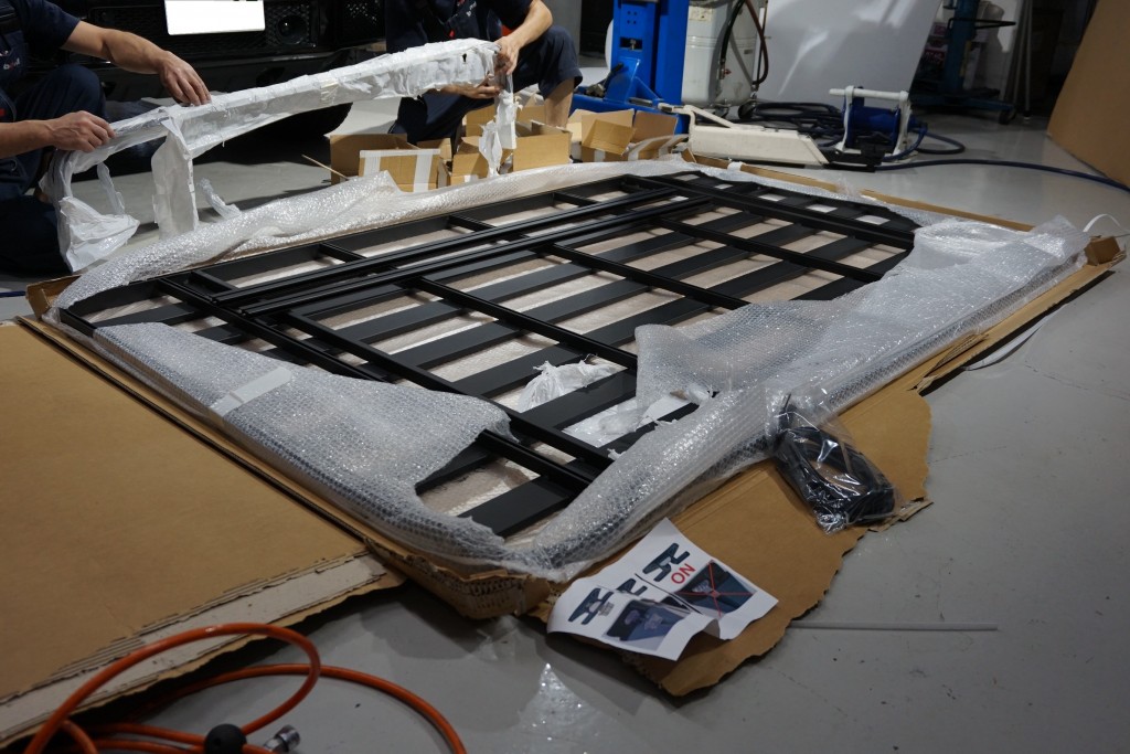 このイカダみたいなルーフラックを組み立てていきます!