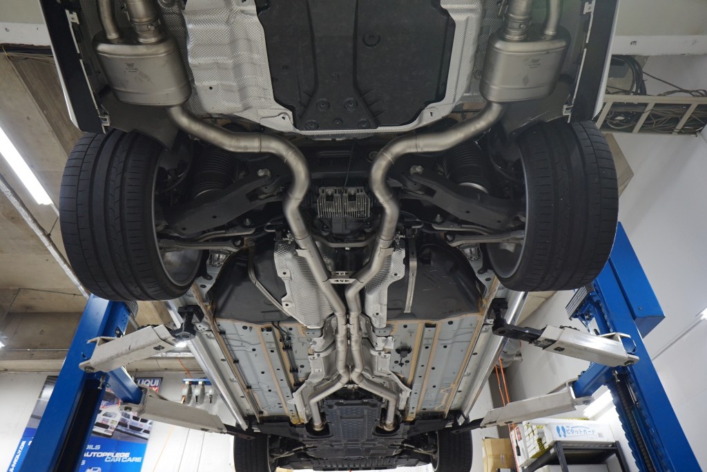まるで純正のカーボンマフラーカッターでも設定があるのかと思ってしまう仕上がりですね。