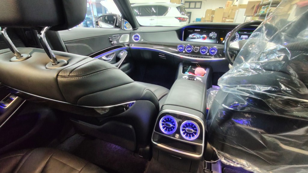 ドアを開けるとLEDに照らされた電動サイドステップが出てきます。