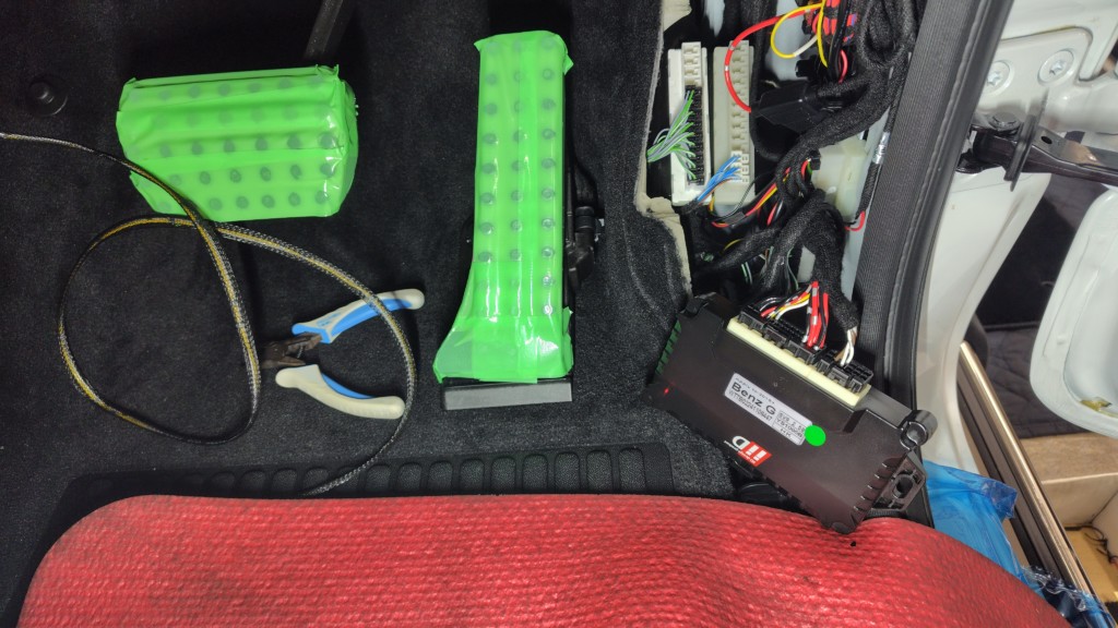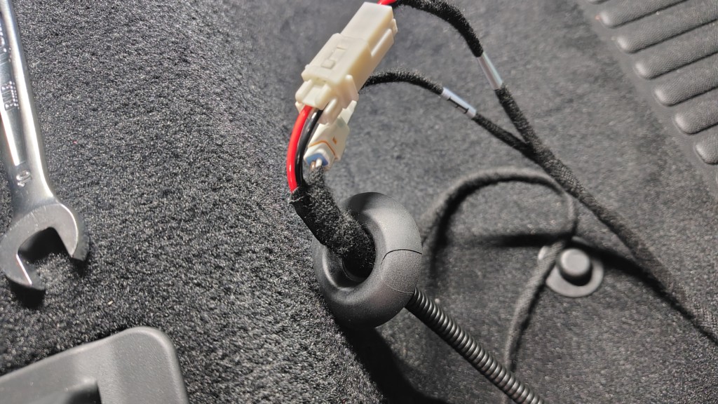 車内で電源を取ったら後は車外に配線を出していきます。