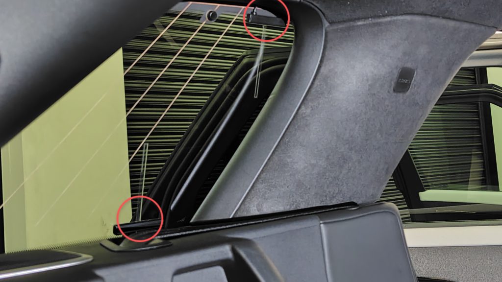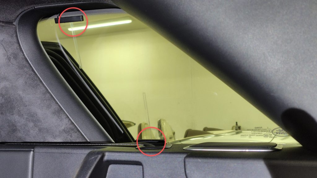 レンジスポーツの場合フィルムアンテナはリアのクォーターガラス貼り付けになります。