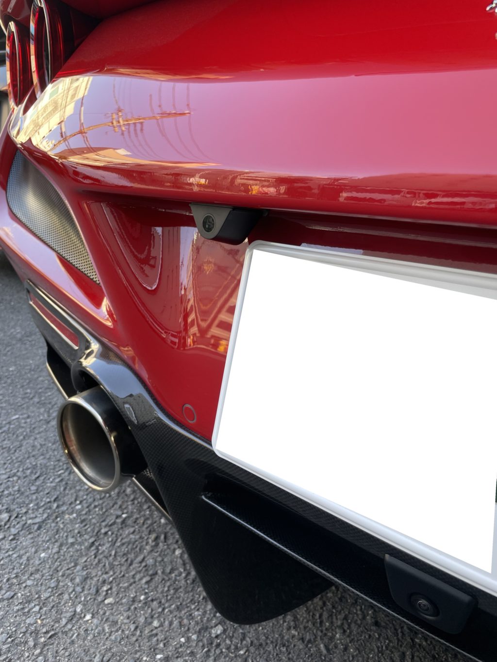 通常のお車の場合、だいたいがナンバー灯の横に取り付けるのですが、