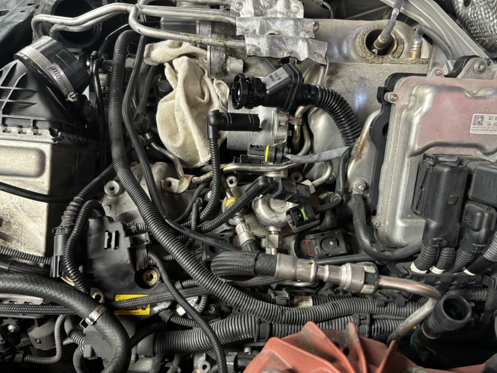 RAIL PRESSURE SENSOR・BOOST PRESSURE SENSOR BRFORE・BOOST PRESSURE SENSOR AFTERの間に配線を割り込まして+12・GROUND・CAN信号を配線していきます。