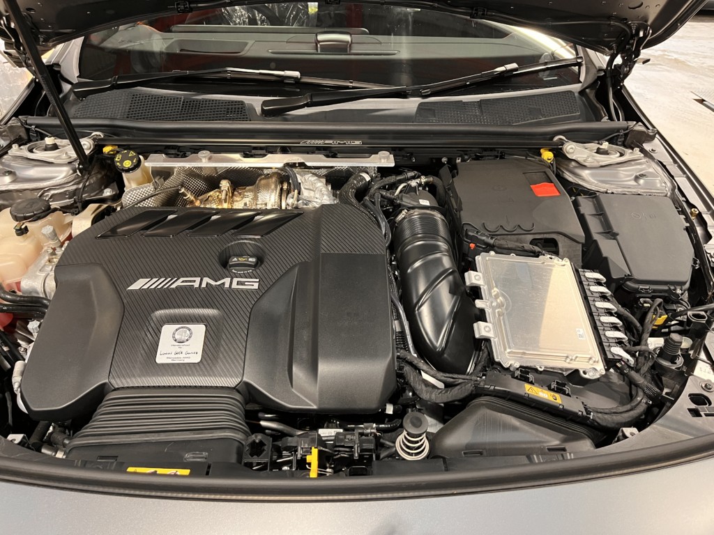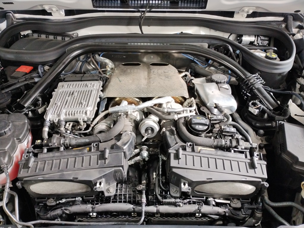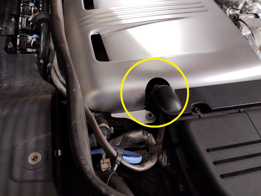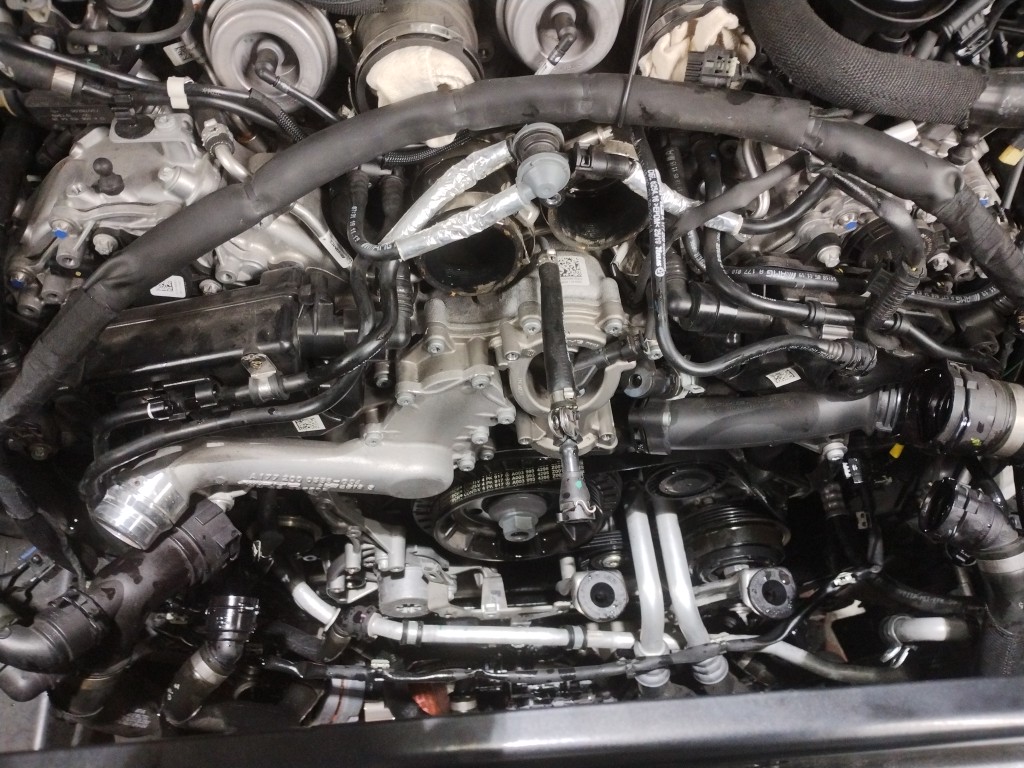 エアクリーナーBOX、インタークーラー&スロットルボディー、エンジンハーネス、電動ファンなど諸々外してやっと見えました
