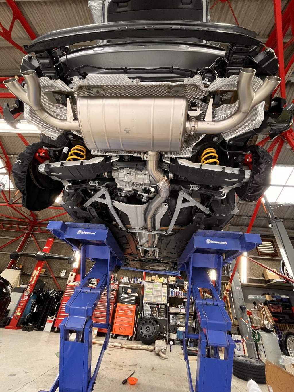 エンジン下部にあるVベルトはインタークーラーを外さないと交換出来ません![]()