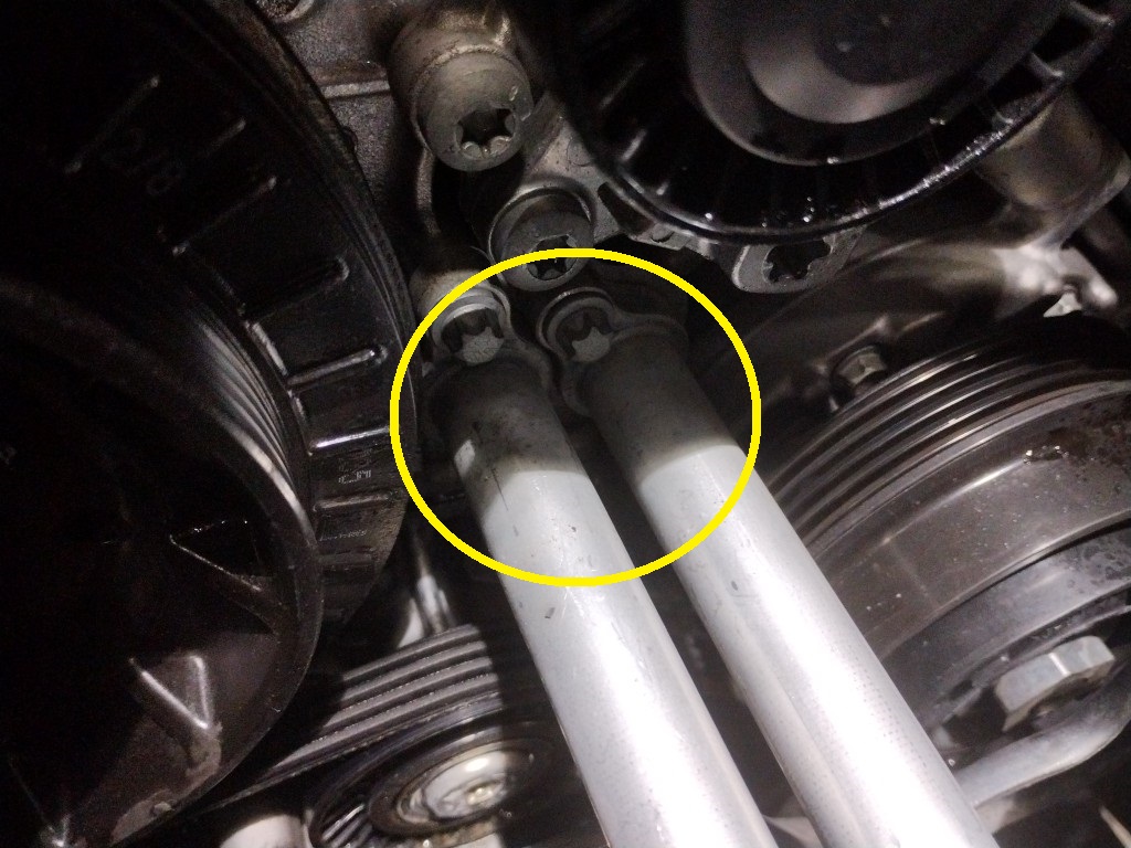 ちなみに黄丸のオイルパイプも外さないとベルト交換が出来ないのでこちらのOリングも新品に交換します