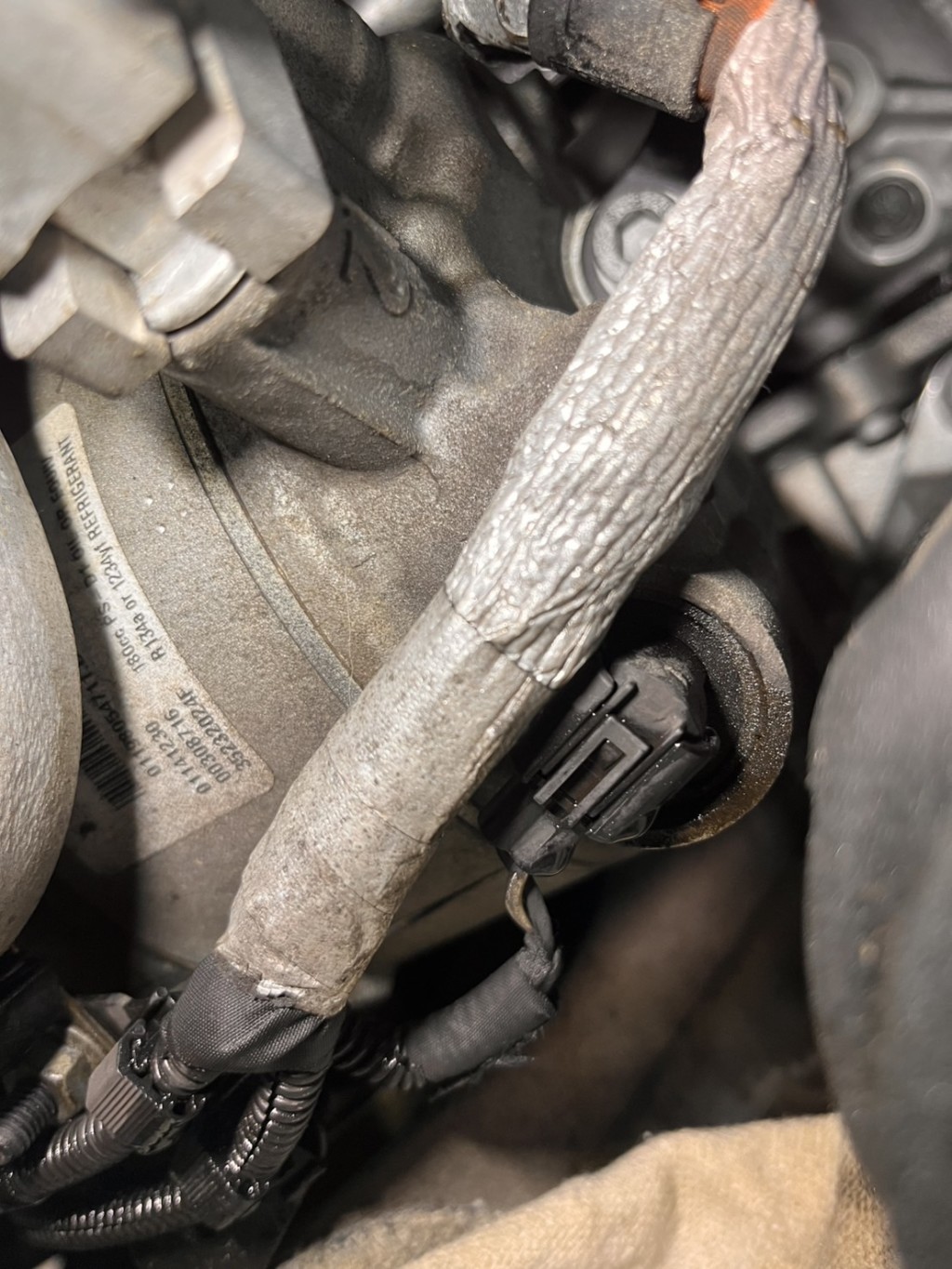 DENSO品のコンプレサーだとここだけ交換できるみたいですが、今回ついているコンプレッサーは該当しませんので
