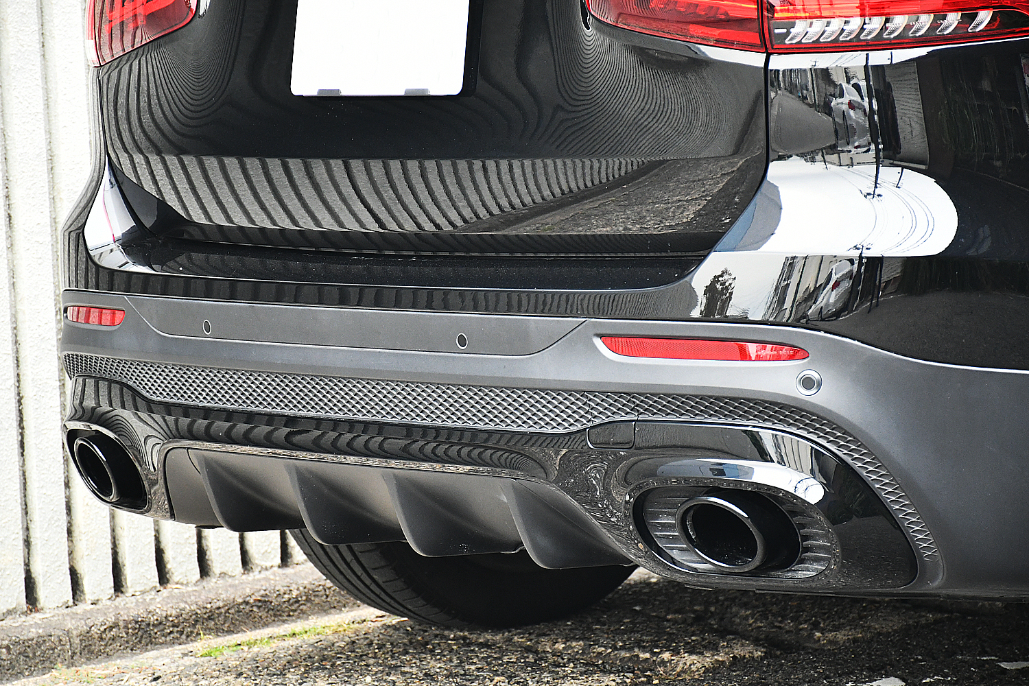 リアバンパーも、“モデリスタエアロ装着車”ですと、素地部分の面積は少ないのですが、