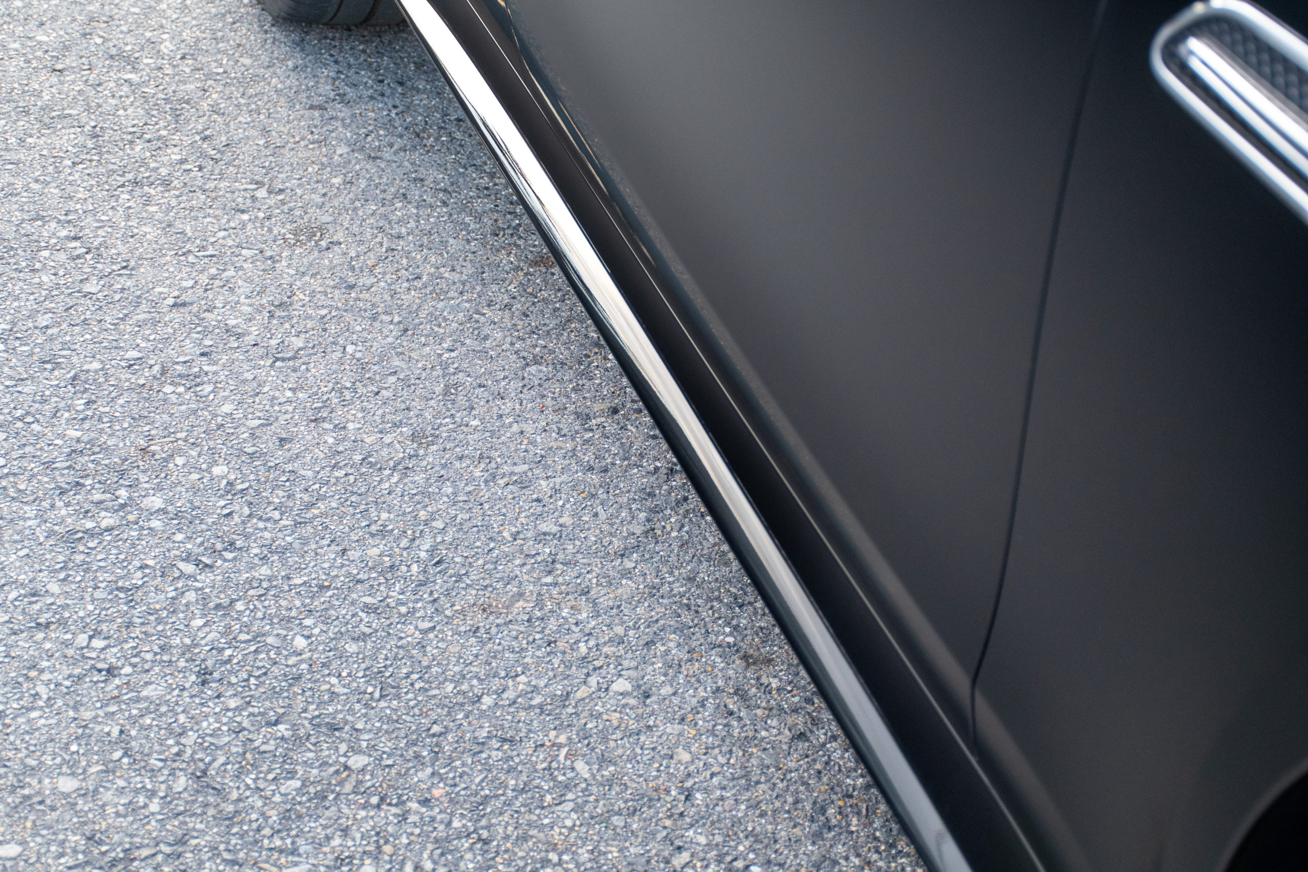 艶ありブラックの上からステルスPPFを施工することで、塗装面を守りながらイメージチェンジもできるという一石二鳥!