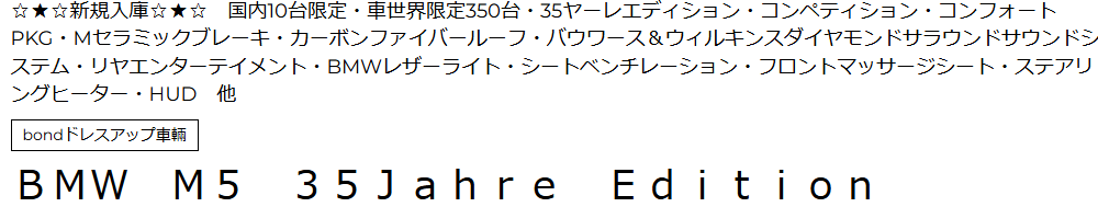2020年 BMW M5コンペティション 35Jahre Editionの詳細はコチラ