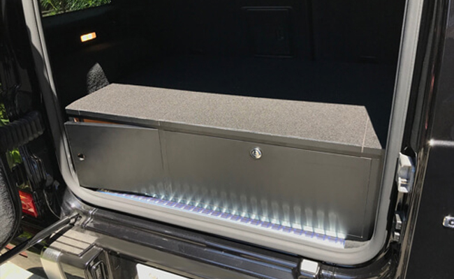 本日は久しぶりにGクラスにラゲッジボードを設置いたしました。