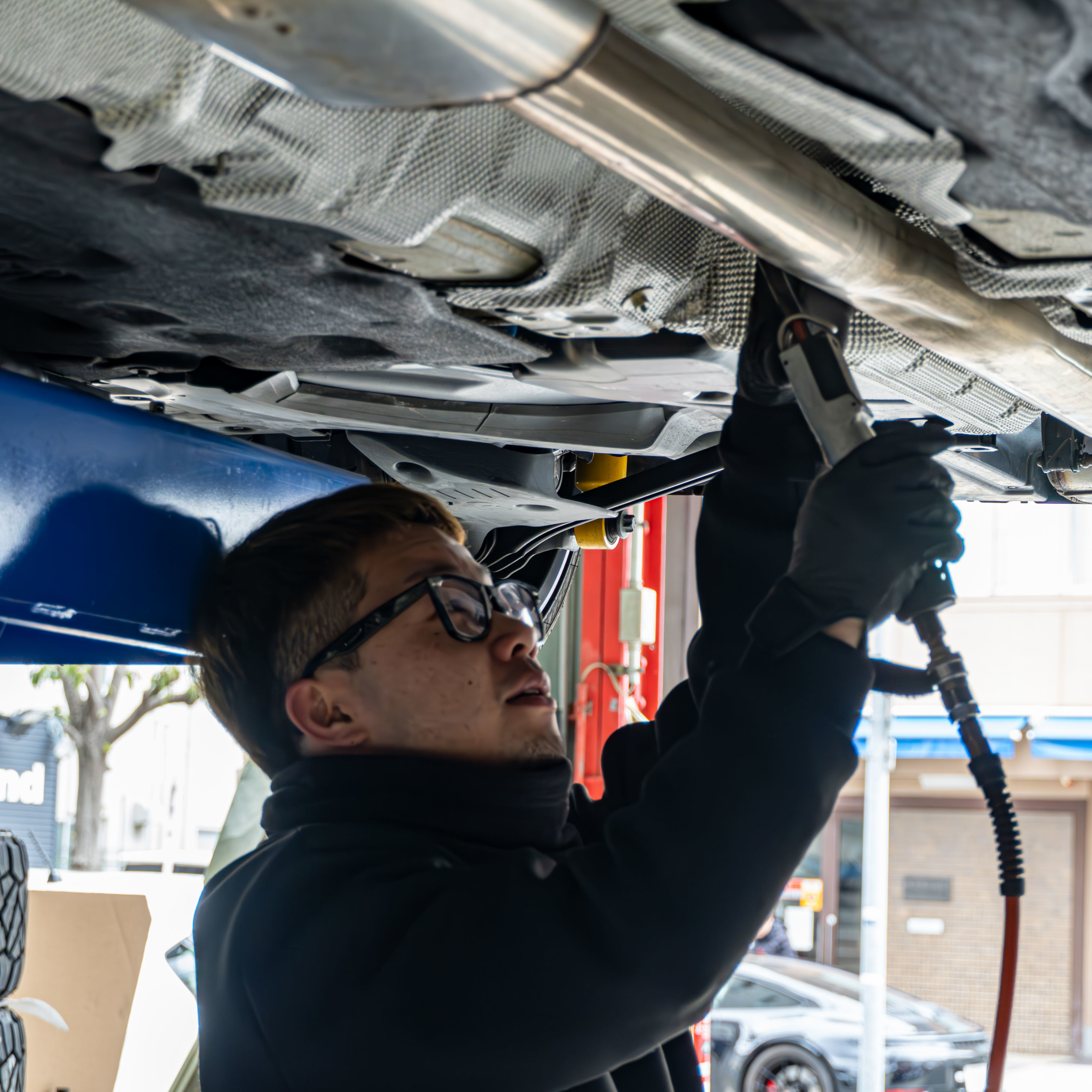 純正は車高が高くてイマイチということで、こちらの車高調を用意させて頂きました![]()