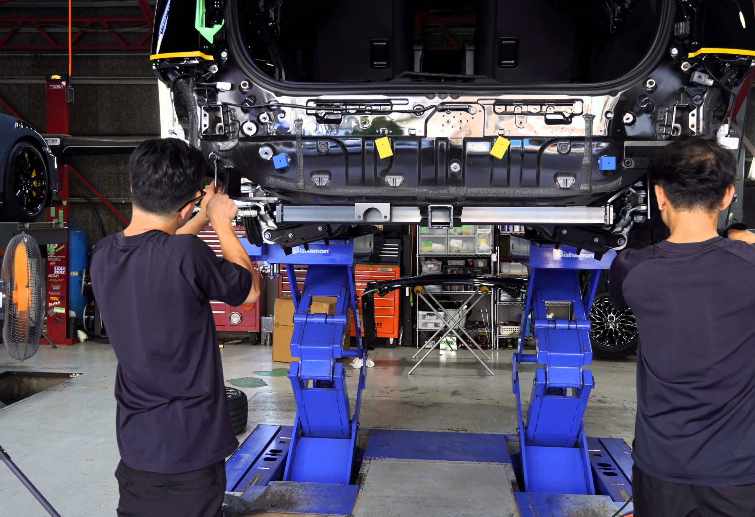 リア回りもブラックアウト&スモーク化、そしてヒッチメンバーも装備![]()